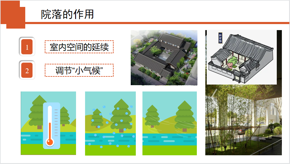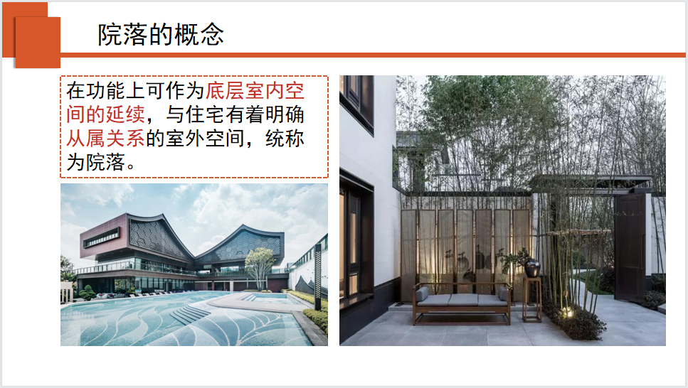 讲解院落的概念及分类等,让学生掌握相关理论知识,对院落空间有比较全面和清晰的认知。
