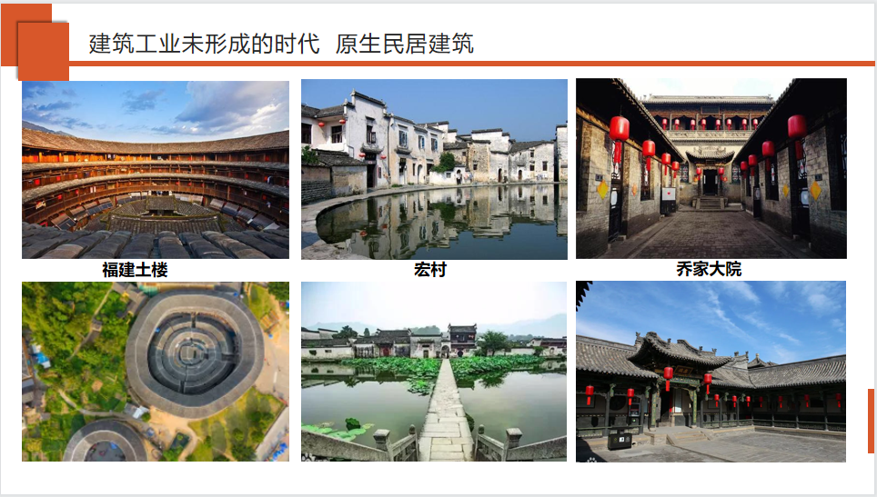中国民居无论在建筑形体组合、院落布局、平面与空间处理上,还是在地形地貌、自然环境的利用上以及外观造型的艺术形式等方面,都积累了独特而璀璨的中国民居建筑文化。如有“圆楼之王”美誉的福建土楼承启楼,具有“画里乡村”之称的徽派建筑群安徽宏村,代表北方传统民居建筑的独特风格的山西乔家大院等等。感受中国悠久的传统民居文化,激发家国情怀。