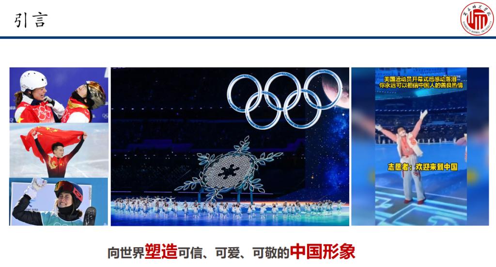 第一步:社会热点+新课引入(思政点1:大国形象)。本章节内容为第一章中建筑构成要素的第三节建筑形象,课程以中国成功举办北京冬奥会为切入点,通过赛事中几张令人感动的瞬间引出正所谓大国之言、出而必行,中国人从服务者、参与者、举办者多个层面向世界展现可信、可爱、可敬的中国形象,由此引发关于建筑形象的表现手法都有哪些而又是如何去塑造的呢?继而导入新课。