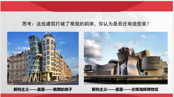 第一步:课前测试+新课引入+基本概念梳理(思政点1:中国建筑韵律之美)。课程以音乐与韵律的关系为切入点,通过梳理中国当代建筑中的韵律特点引入新课,并为学生建立韵律美的初概念。
